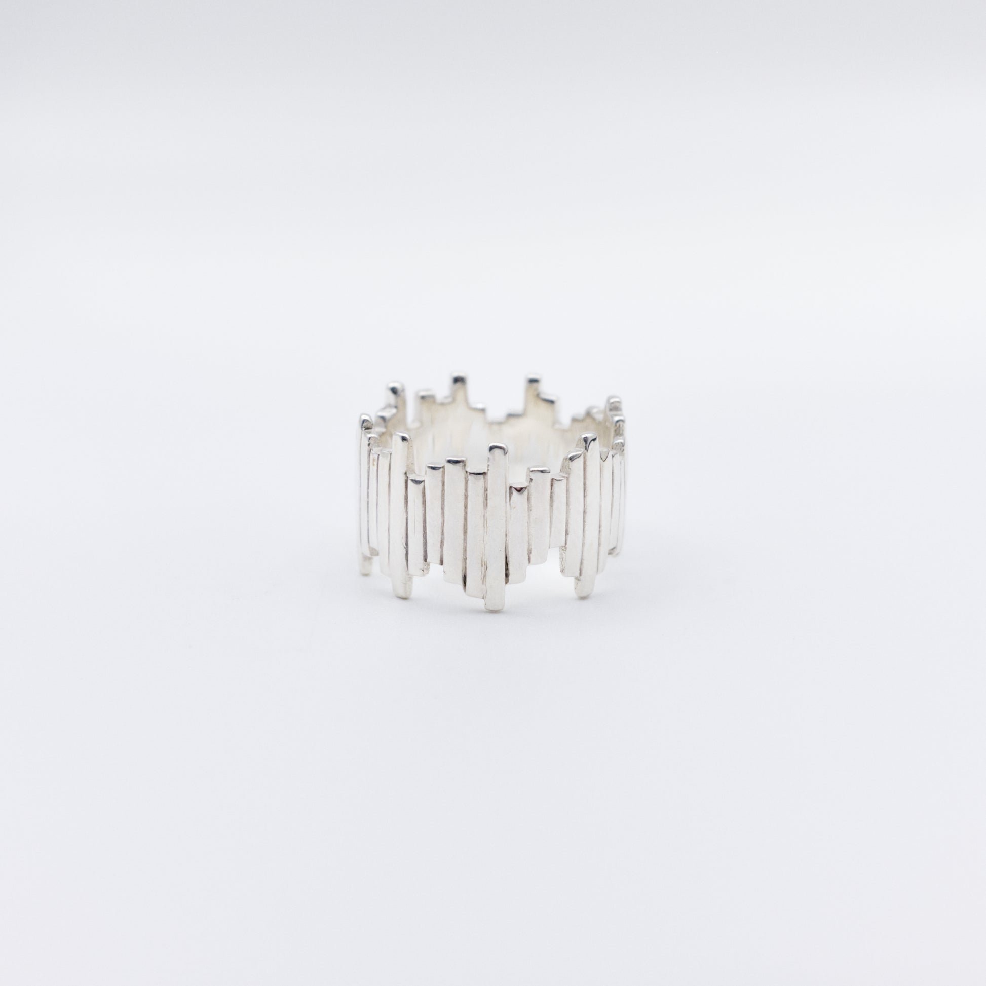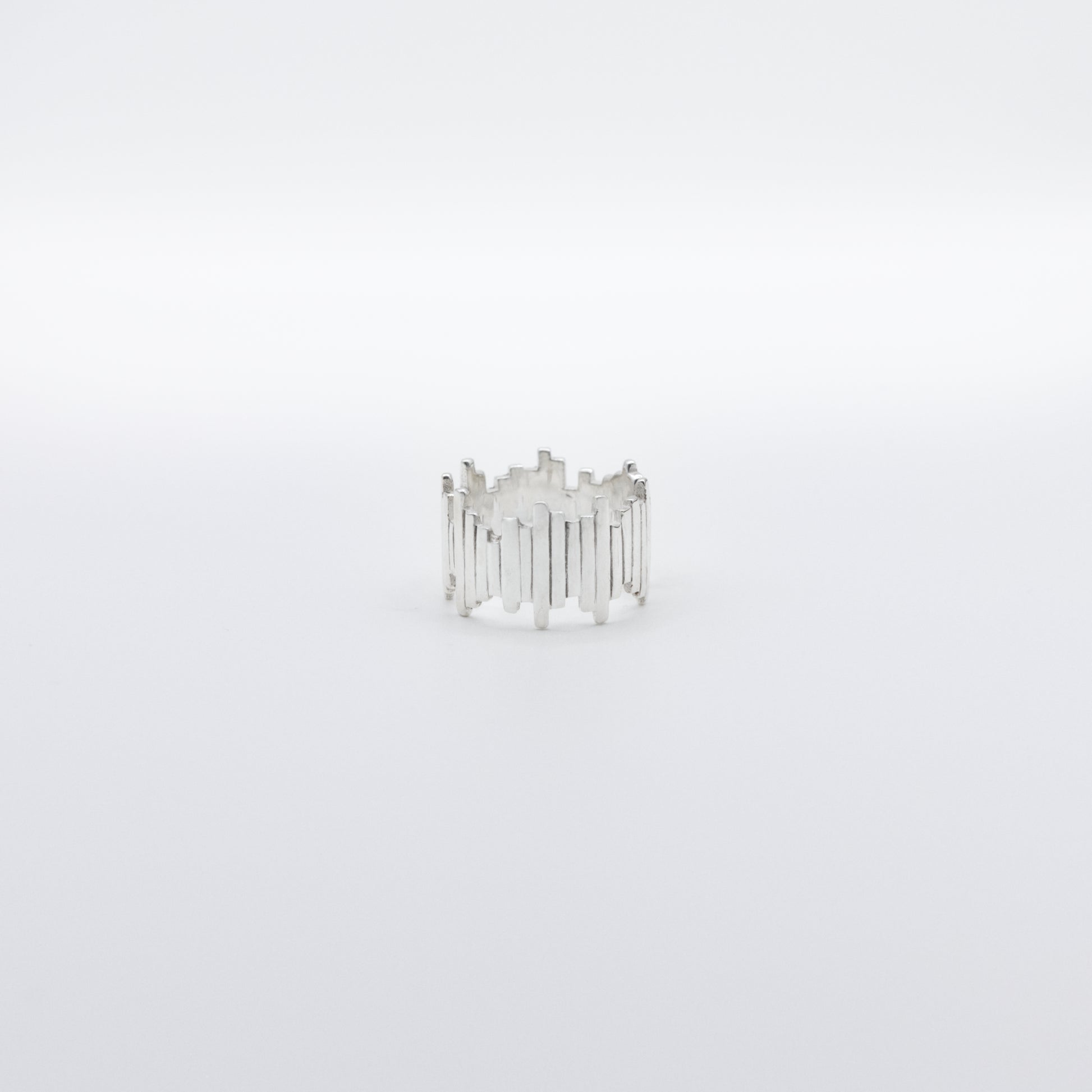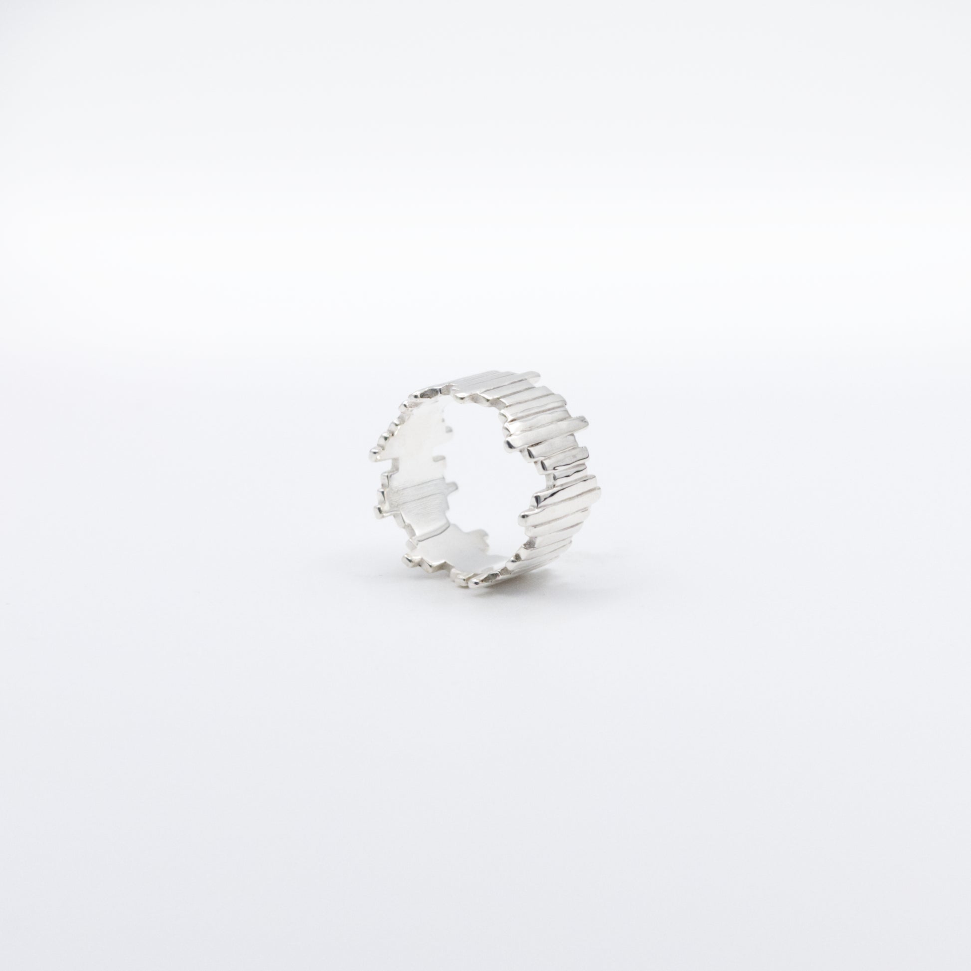 This geometric yet soft, organic and imperfect ring was designed as a quiet reminder that even in uncertain moments, you can find your way forward. Wear it as a symbol of resilience, clarity, and self-trust. The edges are highly textured, offering a tactile, grounding ritual whenever you need it. Pair it with the matching hoops.