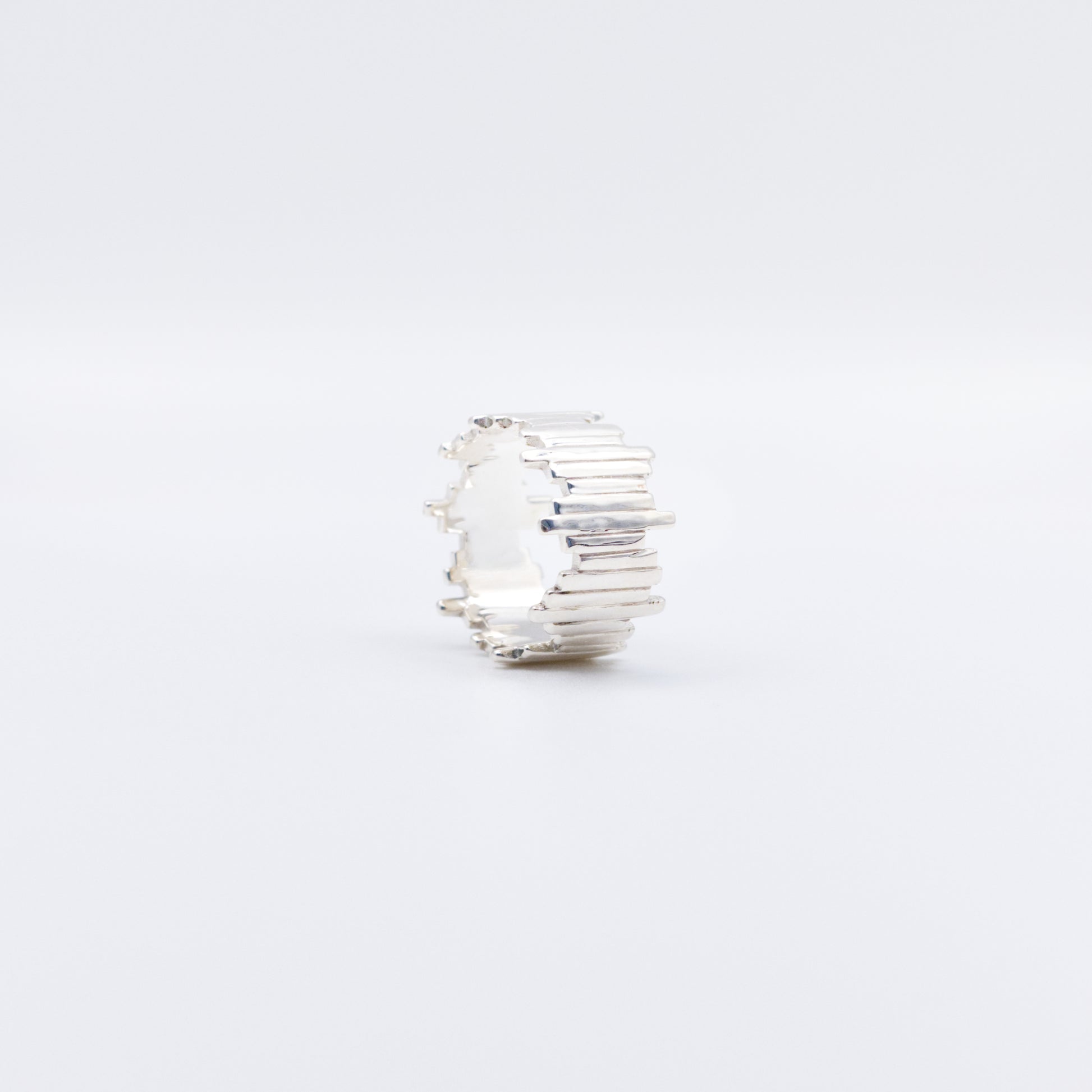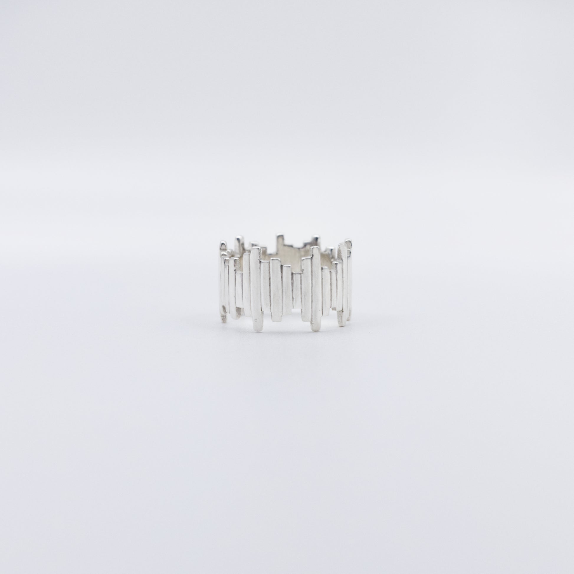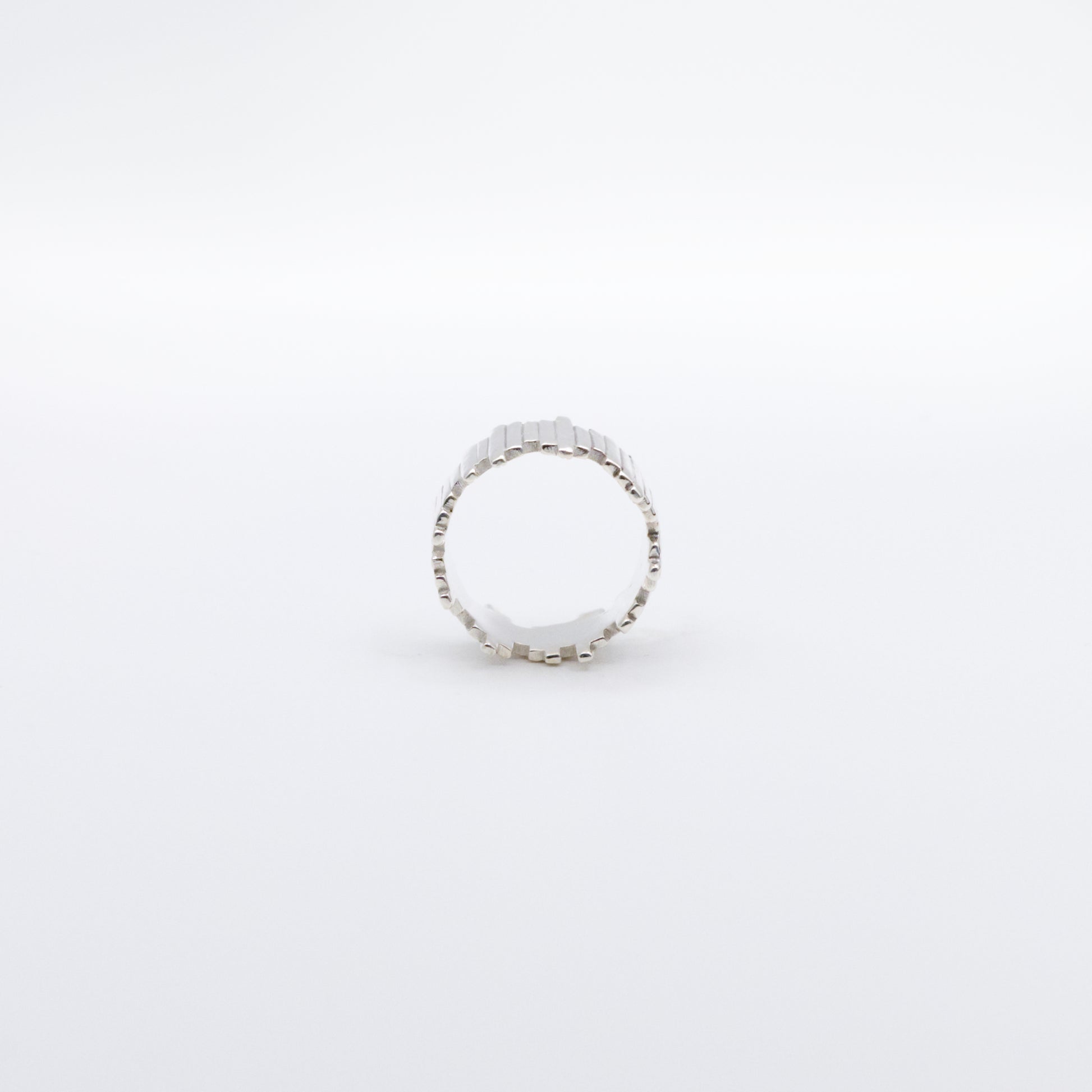 This geometric yet soft, organic and imperfect ring was designed as a quiet reminder that even in uncertain moments, you can find your way forward. Wear it as a symbol of resilience, clarity, and self-trust. The edges are highly textured, offering a tactile, grounding ritual whenever you need it. Pair it with the matching hoops.
